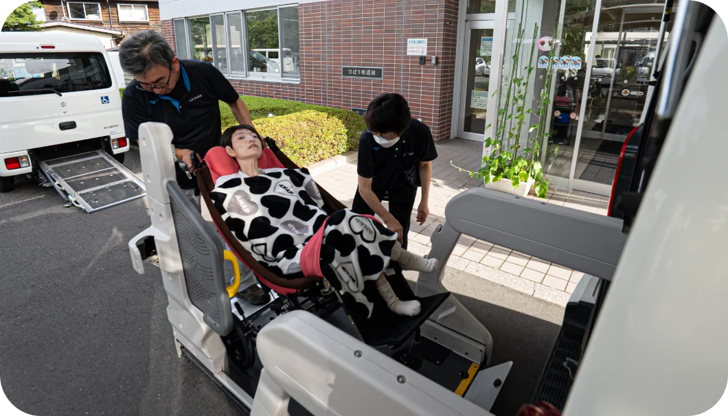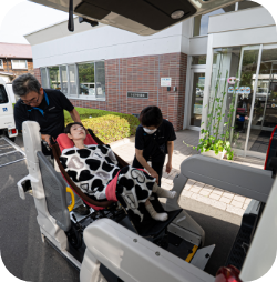 リフト付きの車で、送迎いたします。
